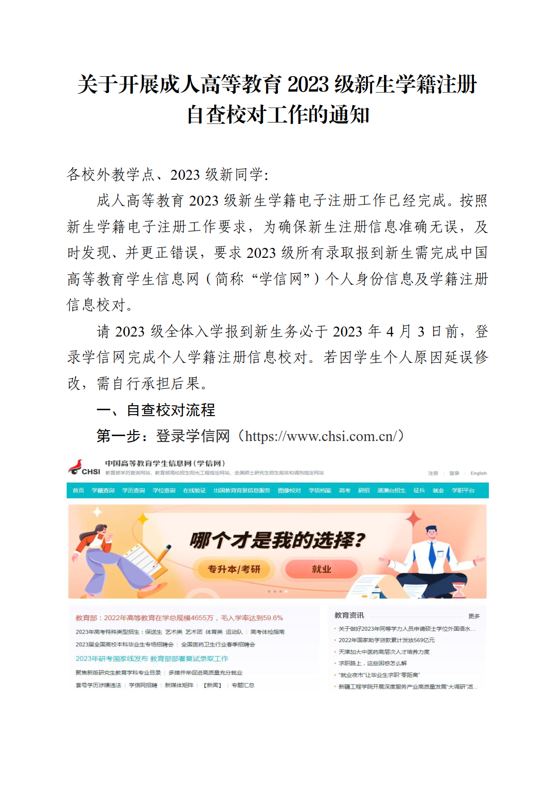 威廉希尔足球关于开展成人高等教育 2023 级新生学籍注册自查校对工作的通知
