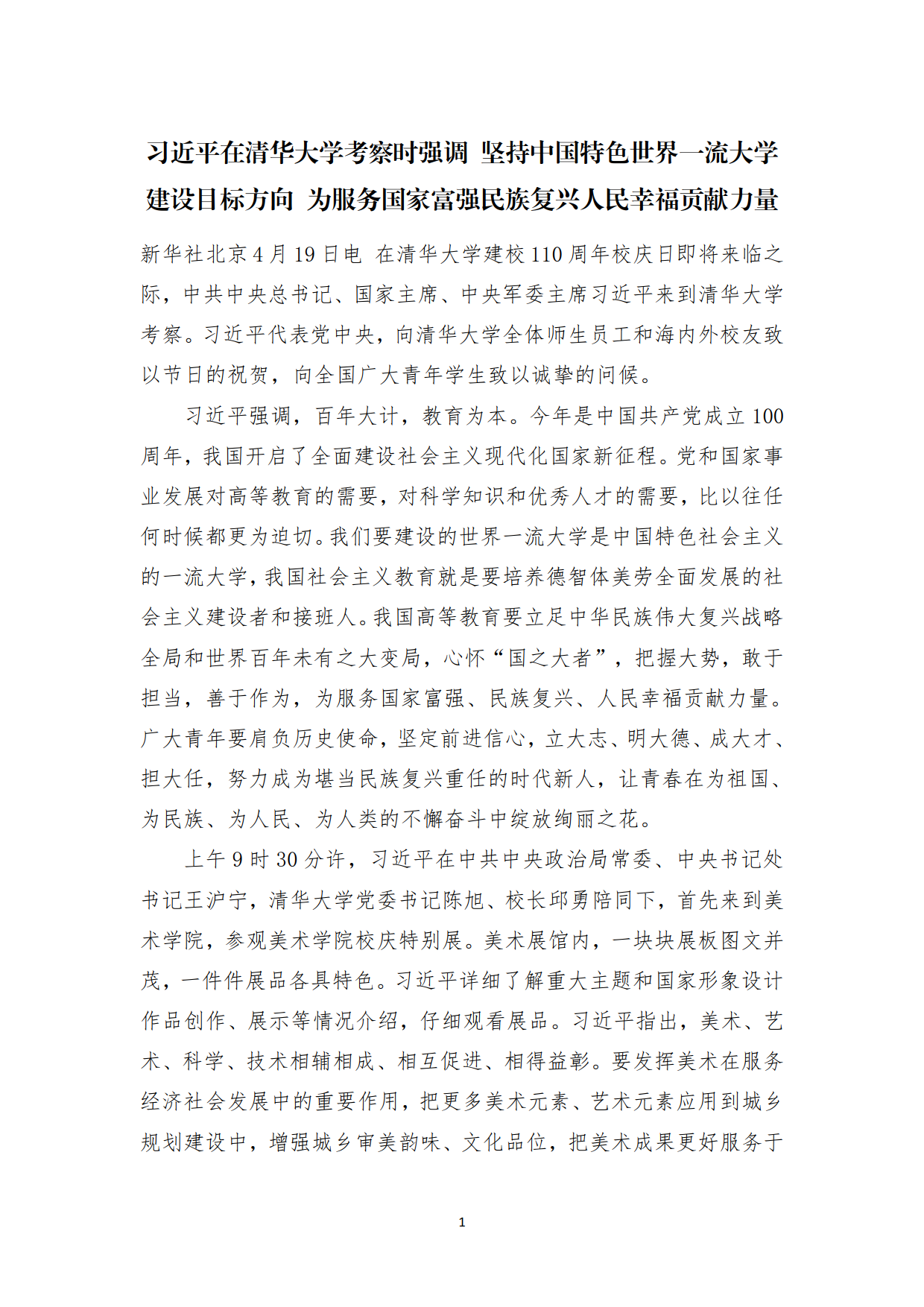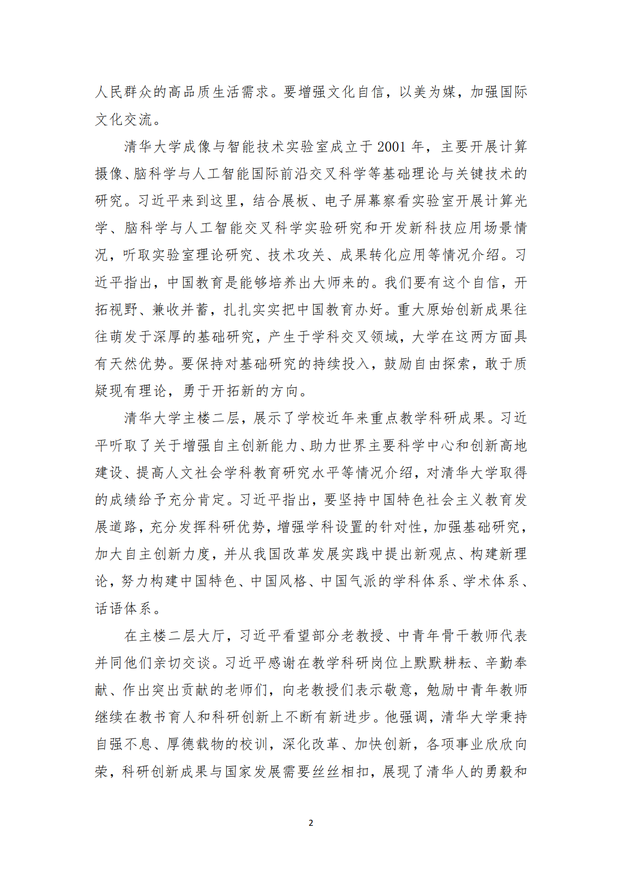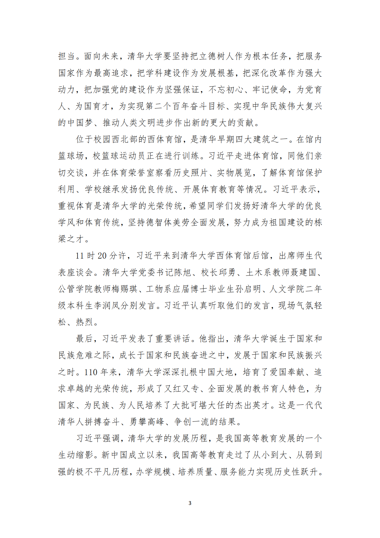 习近平总书记在清华大学考察时的讲话